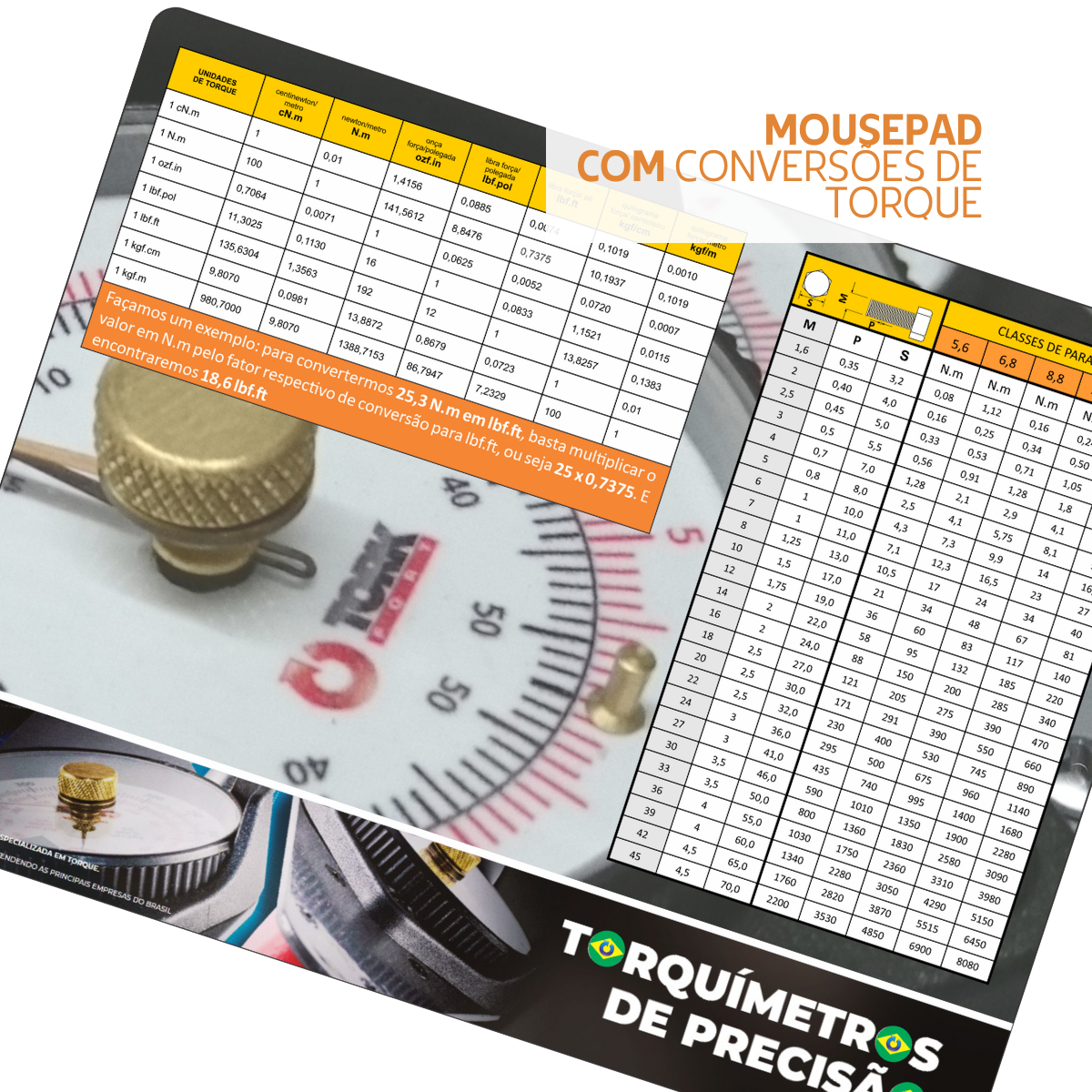 >torquímetro calibrado na escala em N.m. Classificado conforme norma DIN EN ISO 6789, tipo II, classe A;